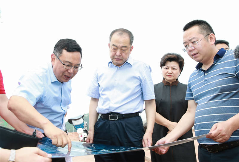 在雅安無(wú)水港鳳鳴物流園項(xiàng)目場(chǎng)平施工現(xiàn)場(chǎng),蘭開(kāi)馳聽(tīng)取了項(xiàng)目業(yè)主交建集團(tuán)黨委書記、董事長(zhǎng)漆家華的工作匯報(bào),詳細(xì)了解無(wú)水港物流項(xiàng)目規(guī)劃、建設(shè)進(jìn)展、業(yè)態(tài)布局等情況。