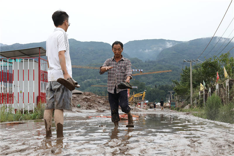 8月18日下午,在草壩青衣江大橋建設(shè)現(xiàn)場(chǎng),項(xiàng)目部外的院壩、工地附近的道路,均覆蓋著厚厚的淤泥。“昨晚緊急撤離,我的車停在河邊,也沒(méi)來(lái)得及開(kāi)走,現(xiàn)在都沒(méi)找到!币荒樒v的李勁松告訴記者,雖然洪水漲勢(shì)迅猛,但他們撤離之前,提前通知了電力部門斷電,否則若有人再次靠近洪水,將面臨觸電的風(fēng)險(xiǎn)。