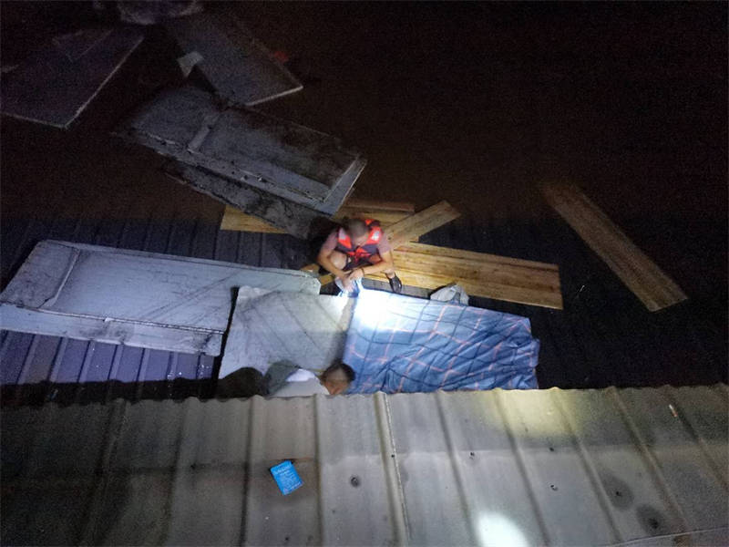 “感謝3名值班人員及時(shí)打電話通知我,否則后果不堪設(shè)想。”簡(jiǎn)敬奎說(shuō),回想起昨晚的情形,心里還是有些后怕。當(dāng)時(shí),他接到值班人員電話后,發(fā)現(xiàn)門衛(wèi)室外的洪水已經(jīng)逼近脖子,無(wú)法順利撤離,洪水漲勢(shì)又快,不一會(huì)兒,他只得爬上門衛(wèi)室頂端才能避免被水淹沒(méi)。后來(lái),洪水沖來(lái)了一棵樹(shù),簡(jiǎn)敬奎借助這棵樹(shù)慢慢轉(zhuǎn)移到了附近一棵較高大的樹(shù)上繼續(xù)躲避,直至黃志和方華軍前來(lái)營(yíng)救。