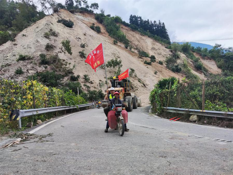 9月5日,項(xiàng)目經(jīng)理吳學(xué)林同志帶領(lǐng)突擊隊(duì)率先抵達(dá)G108線菩薩崗。一次次余震攔不住他們的腳步,一聲聲哀嚎更堅(jiān)定了他們逆行的決心。在通訊受阻的情況下,緊急調(diào)配2臺(tái)挖掘機(jī)、1臺(tái)推土機(jī)自G108線又轉(zhuǎn)戰(zhàn)新民鄉(xiāng),在受災(zāi)嚴(yán)重的X067縣道開(kāi)展道路搶通以及救援工作。在搶險(xiǎn)一線,飛石及塌方的風(fēng)險(xiǎn)時(shí)刻危及著救災(zāi)人員的自身安全!耙欢ㄒ嘤^察!首先要保證自己的安全才能更好地完成搶險(xiǎn)工作!”項(xiàng)目經(jīng)理吳學(xué)林同志、項(xiàng)目工程部副部長(zhǎng)李健同志在轟鳴的搶險(xiǎn)現(xiàn)場(chǎng)喊破嗓子指揮著各類機(jī)具搶險(xiǎn)作業(yè)。待通訊恢復(fù)后,吳學(xué)林同志一邊組織現(xiàn)場(chǎng)搶險(xiǎn),一邊實(shí)時(shí)逐級(jí)上報(bào)受災(zāi)和搶險(xiǎn)情況,與第一時(shí)間趕來(lái)的集團(tuán)公司和路橋公司現(xiàn)場(chǎng)指揮組,會(huì)商道路受阻情況,研究布置搶險(xiǎn)保通工作。緊接著,石棉項(xiàng)目部搶險(xiǎn)人員來(lái)不及片刻休息,馬不停蹄地投入到一處處塌方、受阻道路搶通中。