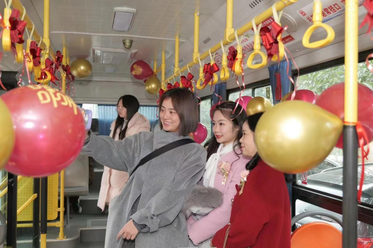 使用這輛“公交婚車”的新人表示:“與傳統(tǒng)迎親的車隊相比,公交婚車不僅低碳環(huán)保,好看熱鬧,而且租金也相對較低,性價比直接拉滿,親朋好友都聚集在寬敞的公交車?yán)铮宦放恼、唱歌,特別有儀式感”。