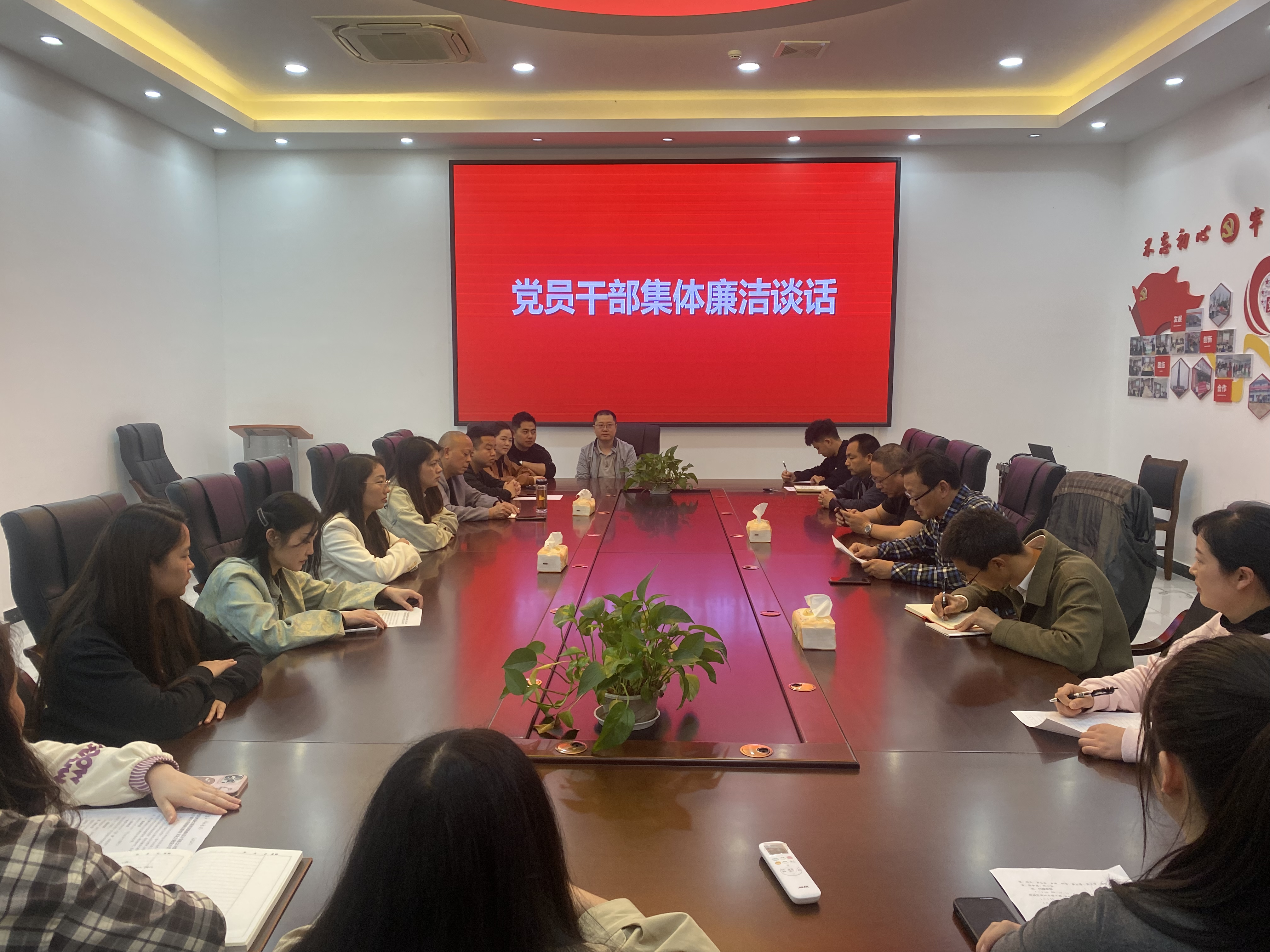 為進(jìn)一步加強(qiáng)黨風(fēng)廉政建設(shè),教育引導(dǎo)黨員干部增強(qiáng)政治意識(shí)、強(qiáng)化使命擔(dān)當(dāng)、守住廉潔底線,切實(shí)扣好廉潔從業(yè)的“第一?圩印,4月10日,佳岳公司黨支部、西康設(shè)計(jì)公司黨支部組織黨員干部召開(kāi)了集體廉潔談話會(huì),經(jīng)營(yíng)班子、中層干部、黨員共計(jì)20余人參會(huì)。