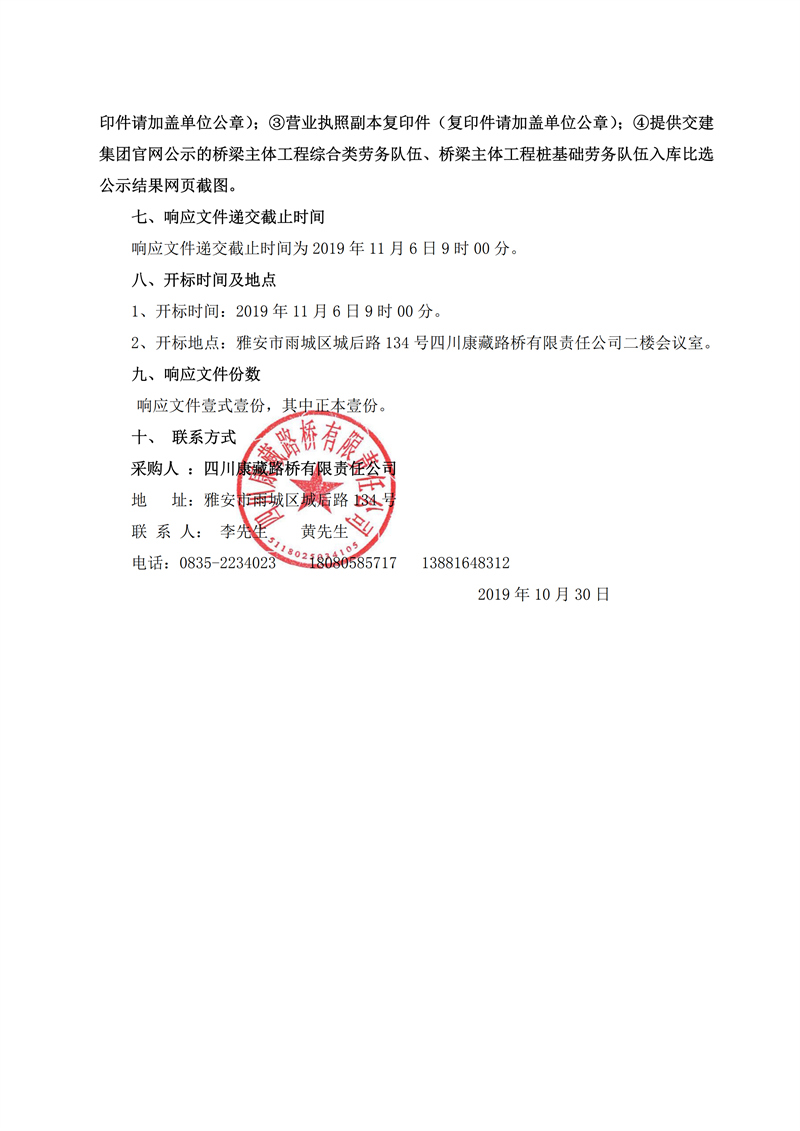四川康藏路橋有限責(zé)任公司省道104線草壩至姚橋段改建工程項(xiàng)目橋梁樁基礎(chǔ)施工勞務(wù)競價(jià)公告