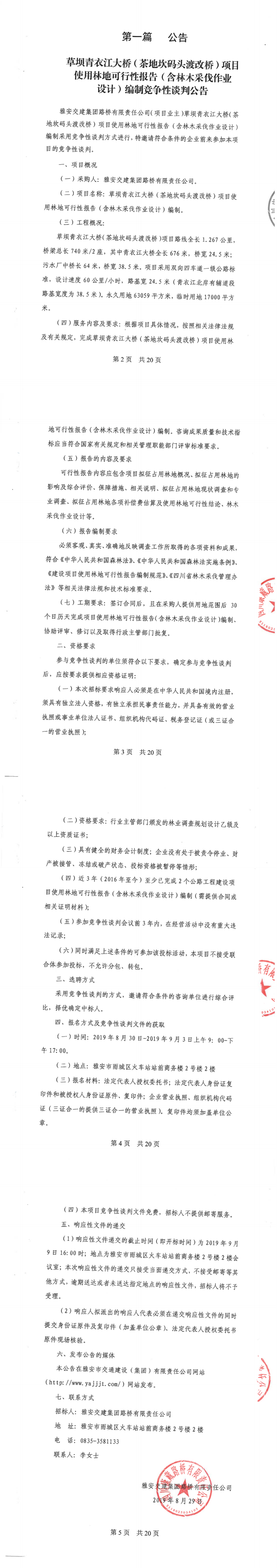 雅安交建集團(tuán)路橋有限責(zé)任公司草壩青衣江大橋(茶地坎碼頭渡改橋)使用林地可行性報(bào)告(含林木采伐作業(yè)設(shè)計(jì))編制競(jìng)爭性談判公告