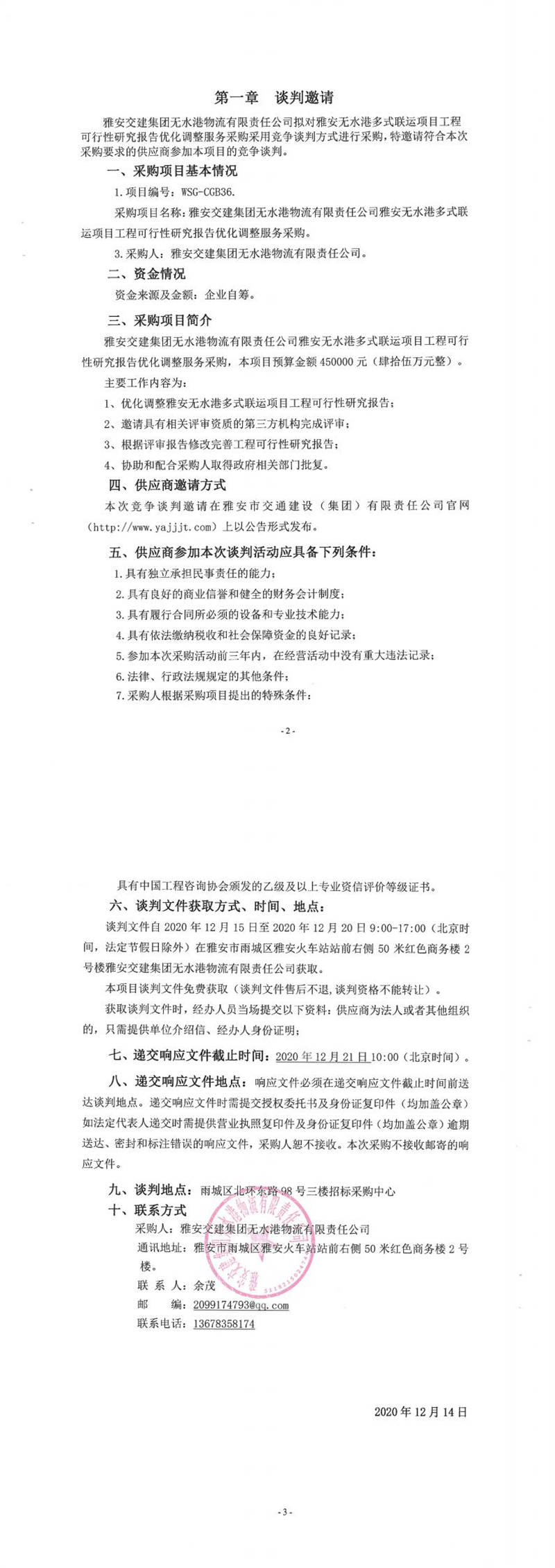 雅安交建集團無水港物流有限責任公司雅安無水港多式聯運項目工程可行性研究報告優(yōu)化調整服務采購競爭談判公告
