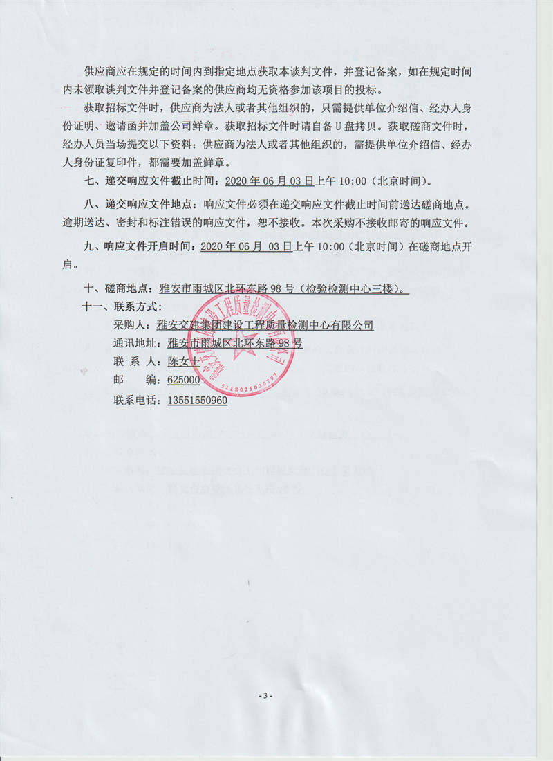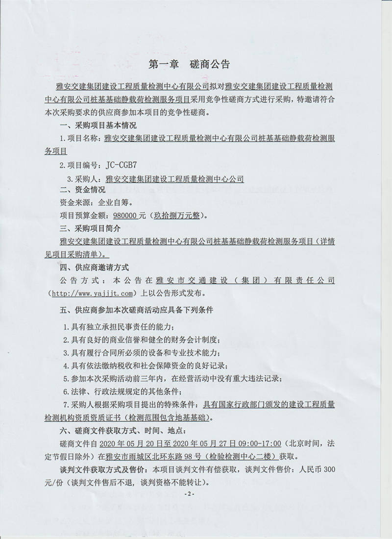 雅安交建集團建設(shè)工程質(zhì)量檢測中心有限公司樁基基礎(chǔ)靜載荷檢測服務(wù)采購項目競爭性磋商公告