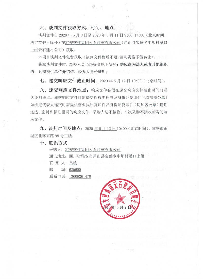 雅安交建集團(tuán)云石建材有限公司生產(chǎn)設(shè)備圓錐破采購(gòu)項(xiàng)目競(jìng)爭(zhēng)性談判(第二次)公告