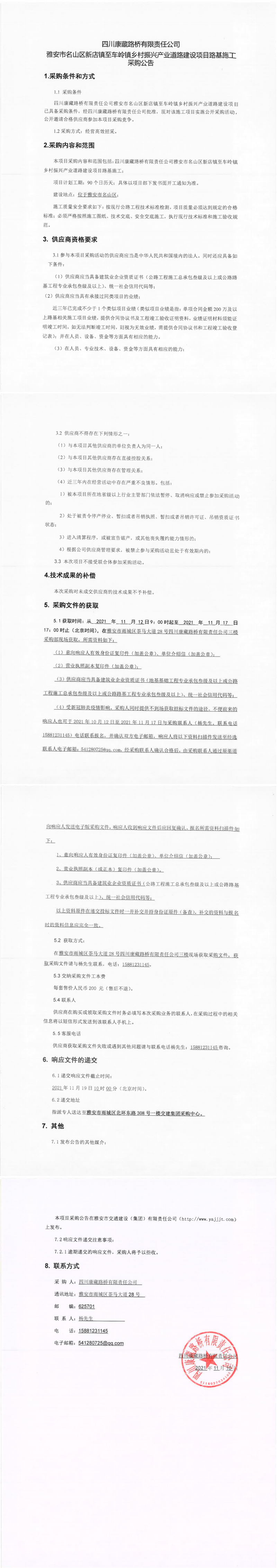 四川康藏路橋有限責(zé)任公司雅安市名山區(qū)新店鎮(zhèn)至車嶺鎮(zhèn)鄉(xiāng)村振興產(chǎn)業(yè)道路建設(shè)項(xiàng)目路面施工采購(gòu)公告