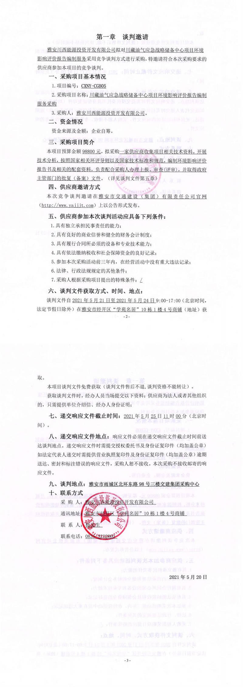 雅安川西能源投資開發(fā)有限公司川藏油氣應(yīng)急戰(zhàn)略儲備中心項(xiàng)目環(huán)境影響評價(jià)報(bào)告編制服務(wù)采購競爭談判公告