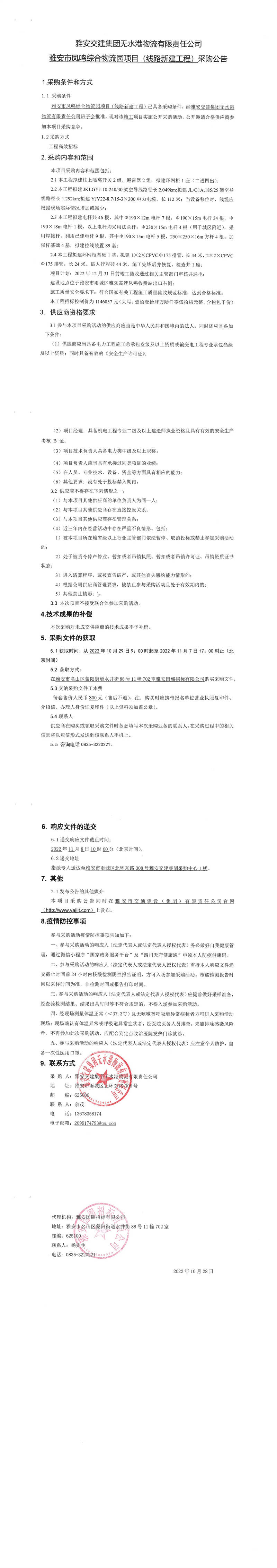 雅安交建集團(tuán)無(wú)水港物流有限責(zé)任公司雅安市鳳鳴綜合物流園項(xiàng)目(線路新建工程)采購(gòu)公告