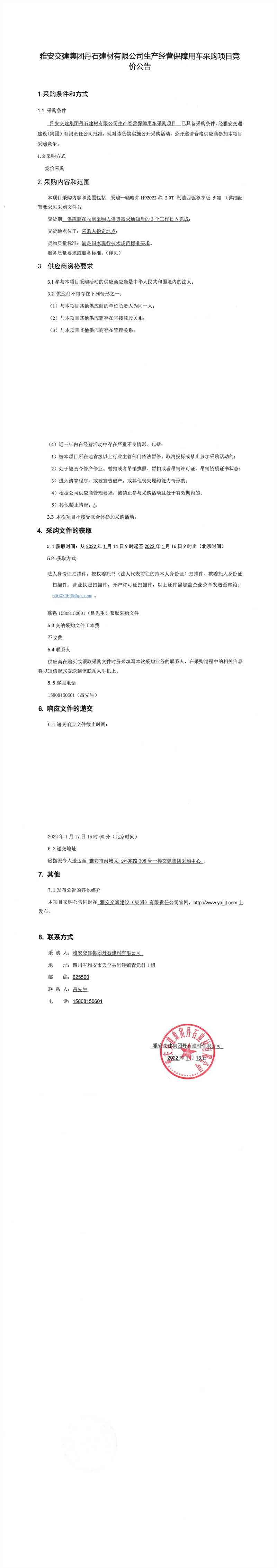 雅安交建集團(tuán)丹石建材有限公司生產(chǎn)經(jīng)營保障用車采購項(xiàng)目競(jìng)價(jià)公告