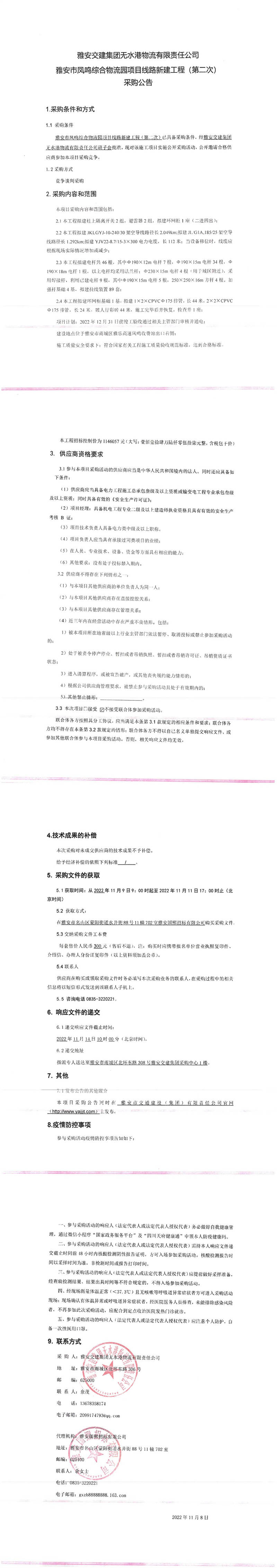 雅安交建集團(tuán)無水港物流有限責(zé)任公司雅安市鳳鳴綜合物流園項(xiàng)目線路新建工程(第二次)采購公告