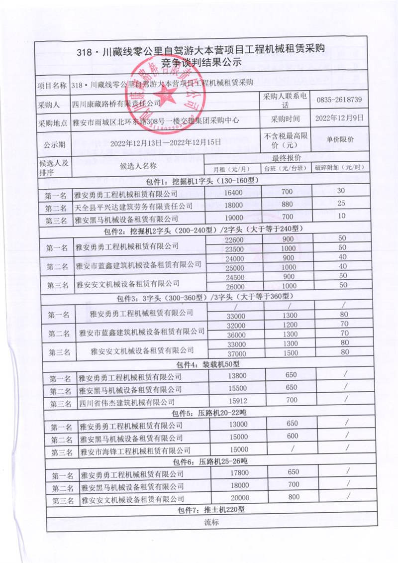 四川康藏路橋有限責(zé)任公司318.川藏線零公里自駕游大本營項目工程機械租賃采購競爭談判結(jié)果公示