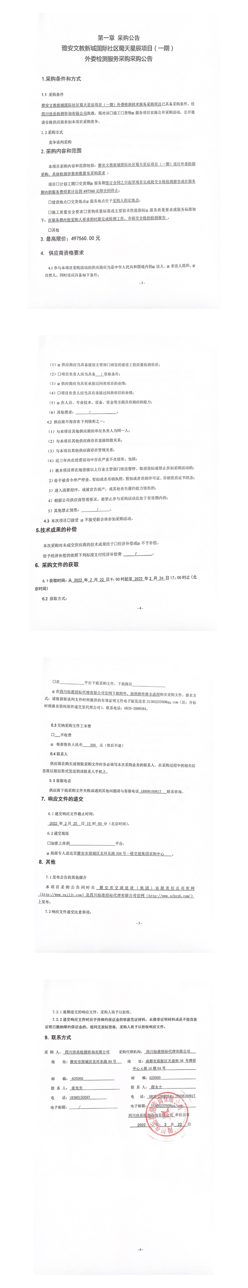 四川佳岳檢測(cè)咨詢(xún)有限公司雅安文教新城國(guó)際社區(qū)蜀天星辰項(xiàng)目(一期)外委檢測(cè)服務(wù)采購(gòu)采購(gòu)公告