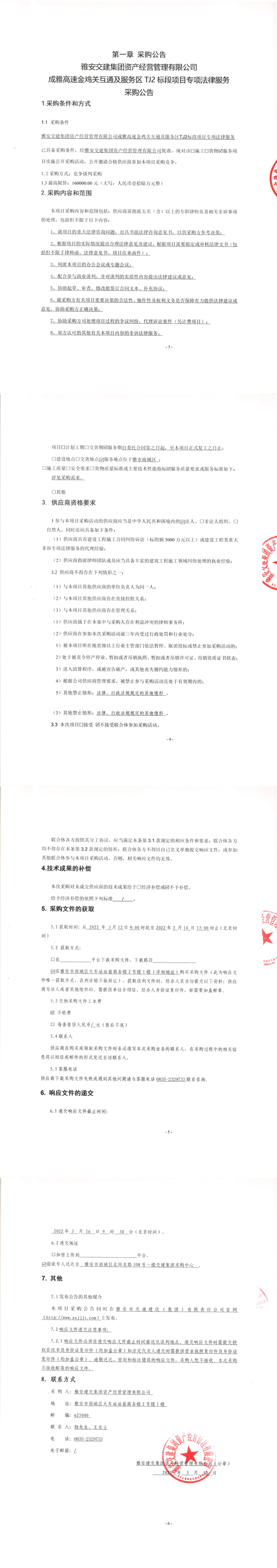 雅安交建集團(tuán)資產(chǎn)經(jīng)營(yíng)管理有限公司成雅高速金雞關(guān)互通及服務(wù)區(qū)TJ2標(biāo)段項(xiàng)目專項(xiàng)法律服務(wù)采購公告