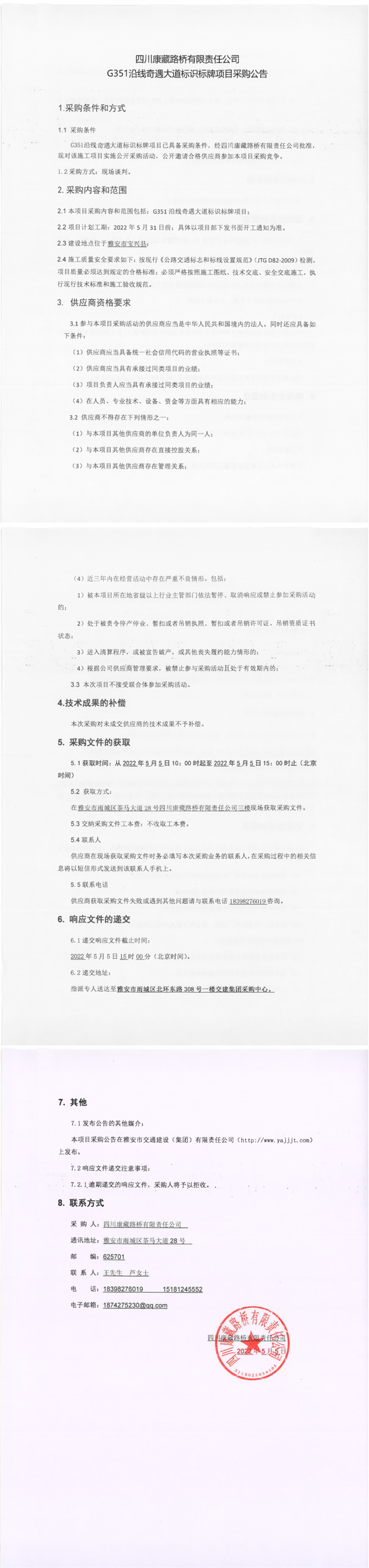 四川康藏路橋有限責(zé)任公司G351沿線(xiàn)奇遇大道標(biāo)識(shí)標(biāo)牌項(xiàng)目采購(gòu)公告