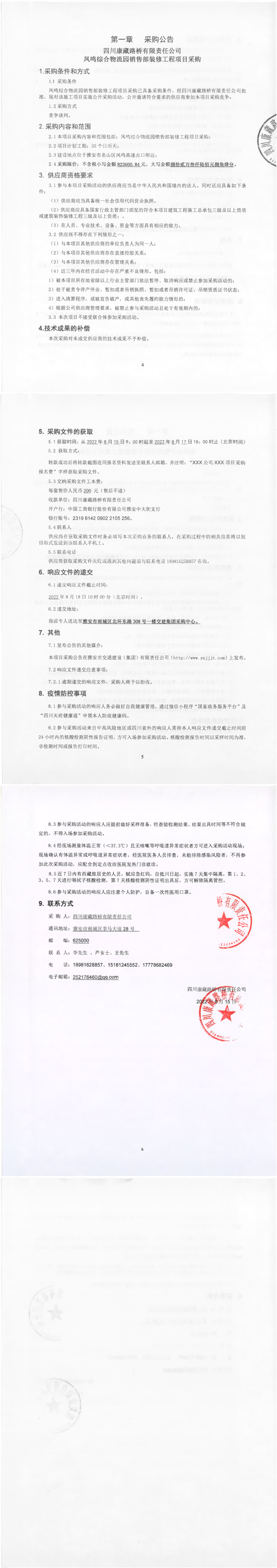 四川康藏路橋有限責(zé)任公司鳳鳴綜合物流園銷售部裝修工程項目采購公告