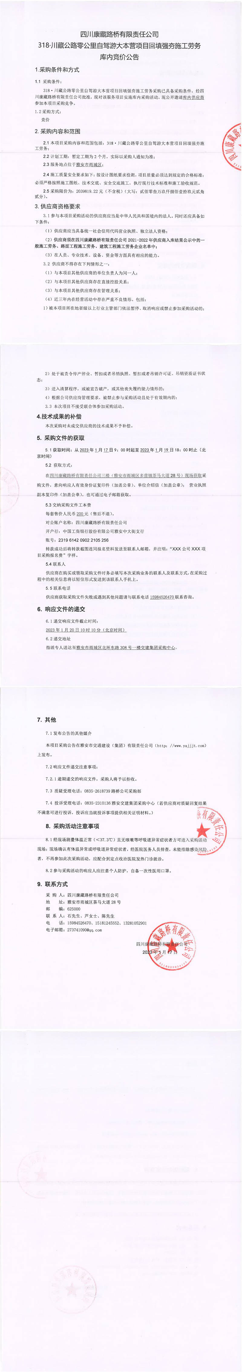 四川康藏路橋有限責(zé)任公司S431蘆山縣龍門至雙石段改建工程項(xiàng)目邊坡防護(hù)工程施工勞務(wù)采購競爭談判結(jié)果公示