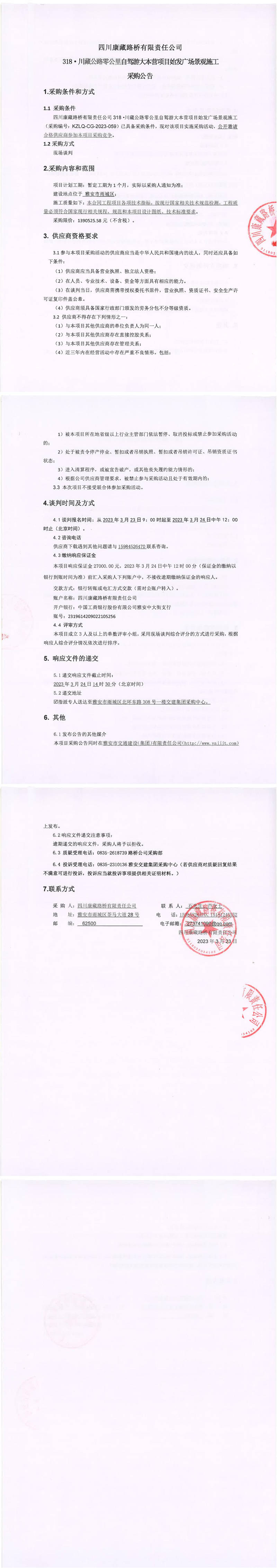 四川康藏路橋有限責(zé)任公司318·川藏公路零公里自駕游大本營項(xiàng)目始發(fā)廣場景觀施工采購公告