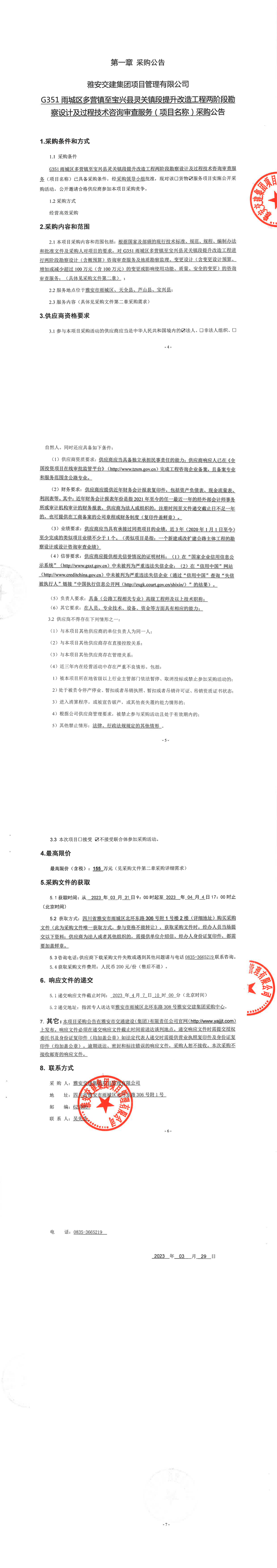 雅安交建集團(tuán)項(xiàng)目管理有限公司G351雨城區(qū)多營(yíng)鎮(zhèn)至寶興縣靈關(guān)鎮(zhèn)段提升改造工程兩階段勘察設(shè)計(jì)及過(guò)程技術(shù)咨詢(xún)審查服務(wù)(項(xiàng)目名稱(chēng))采購(gòu)公告