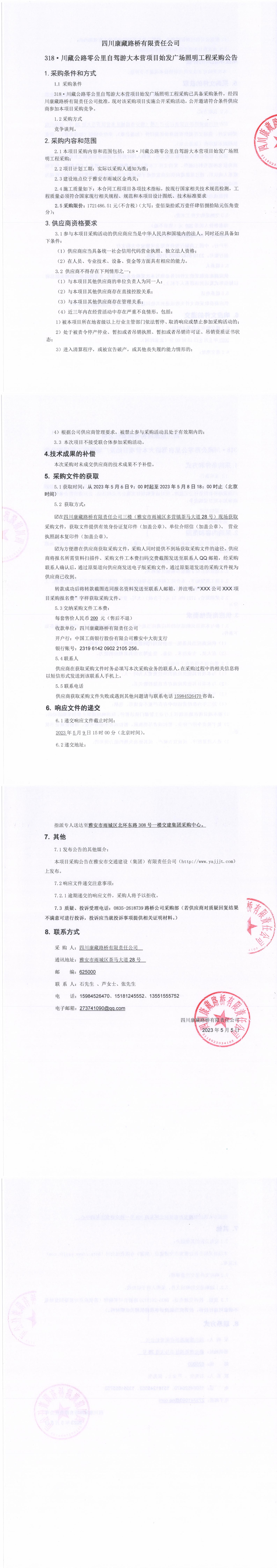 四川康藏路橋有限責(zé)任公司318·川藏公路零公里自駕游大本營項(xiàng)目始發(fā)廣場照明工程采購公告