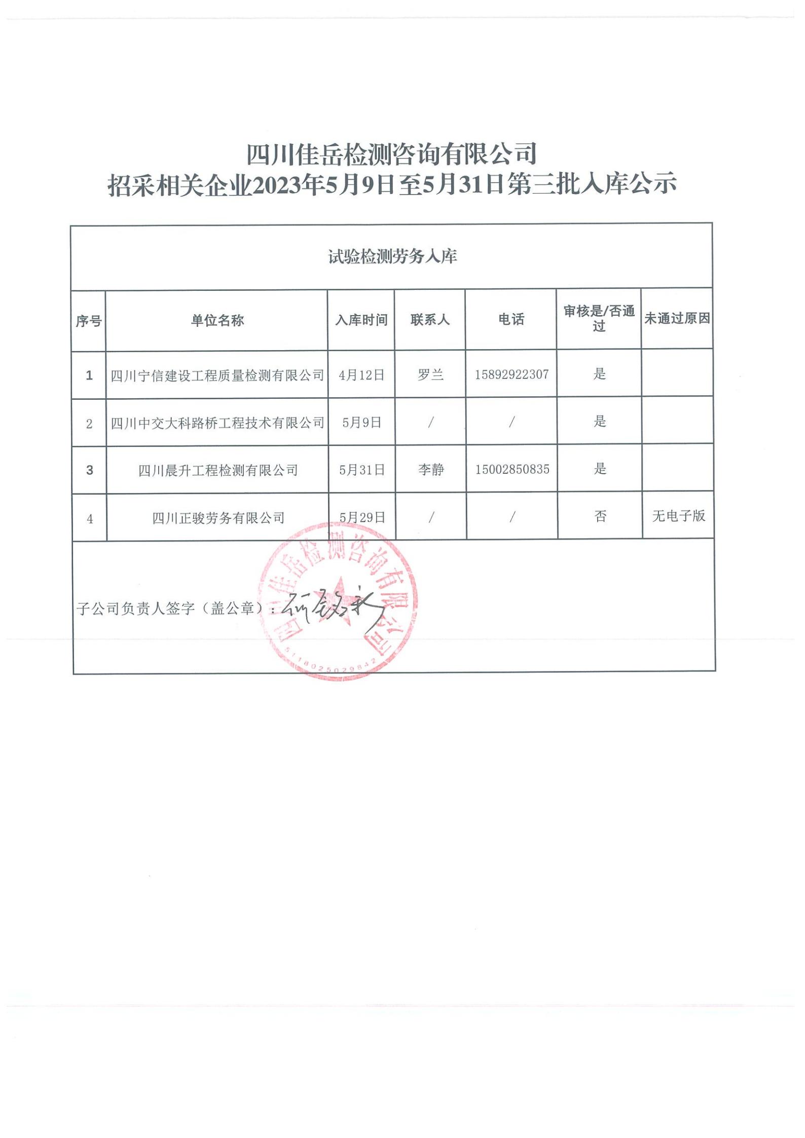 四川佳岳檢測咨詢有限公司(試驗(yàn)檢測勞務(wù)供應(yīng)商庫)2023年5月9日至5月31日第三批入庫結(jié)果公示