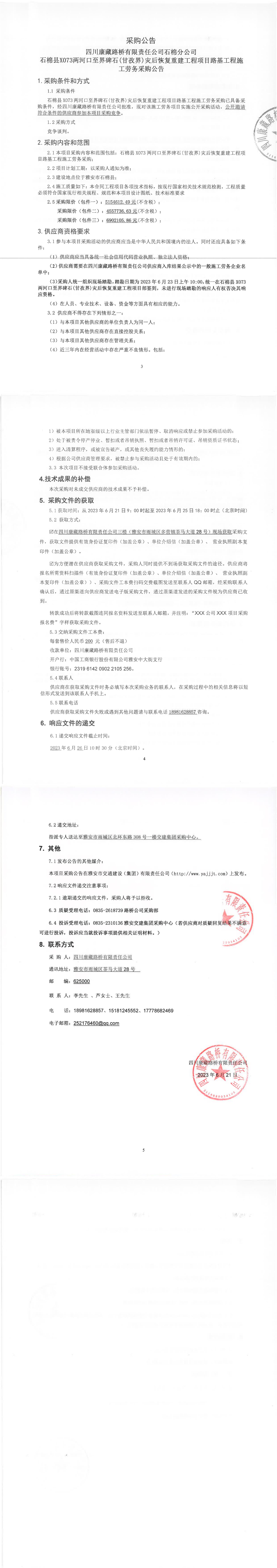 四川康藏路橋有限責(zé)任公司石棉縣X066王崗坪至王崗坪景區(qū)段災(zāi)后恢復(fù)重建工程項(xiàng)目路面工程K0+000-K48+691七標(biāo)段施工勞務(wù)采購公告