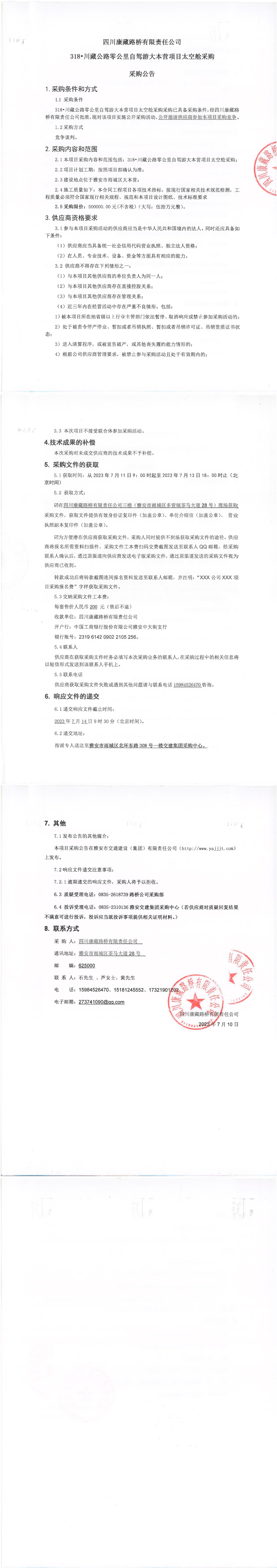 四川康藏路橋有限責(zé)任公司318·川藏公路零公里自駕游大本營項目太空艙采購公告