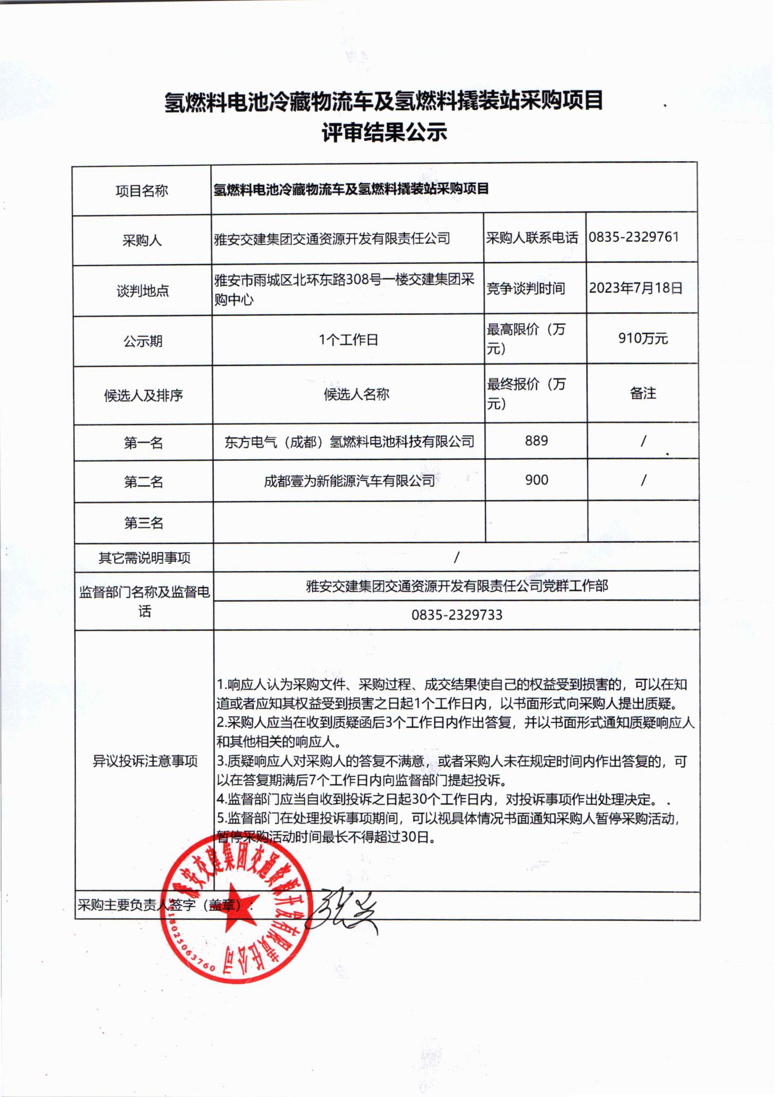 雅安交建集團(tuán)交通資源開(kāi)發(fā)有限責(zé)任公司氫燃料撬裝站采購(gòu)項(xiàng)目評(píng)審結(jié)果公示