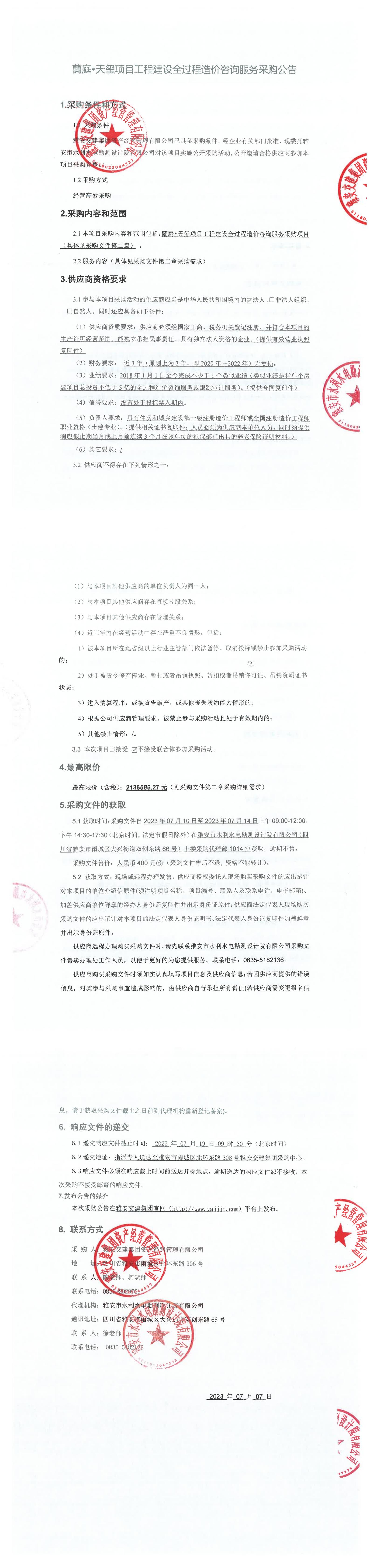 雅安交建集團資產(chǎn)經(jīng)營管理有限公司蘭庭•天璽項目工程建設全過程造價咨詢服務采購公告
