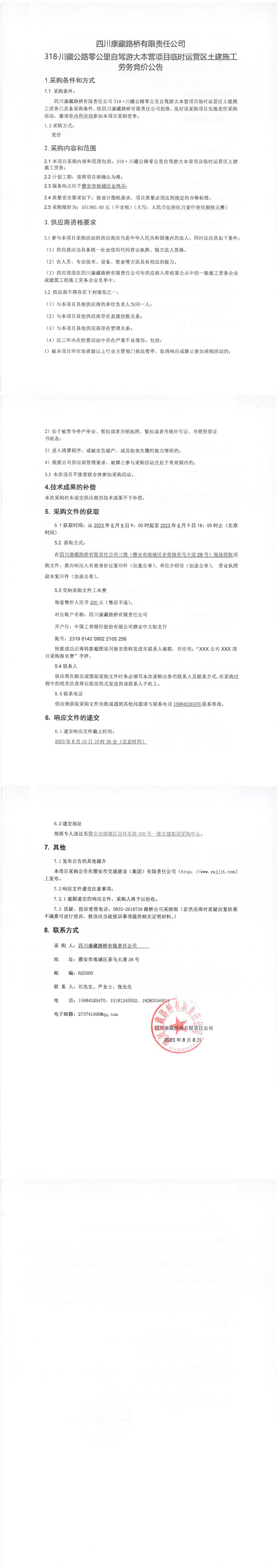 四川康藏路橋有限責(zé)任公司318·川藏公路零公里自駕游大本營項目臨時運營區(qū)土建施工勞務(wù)競價公告