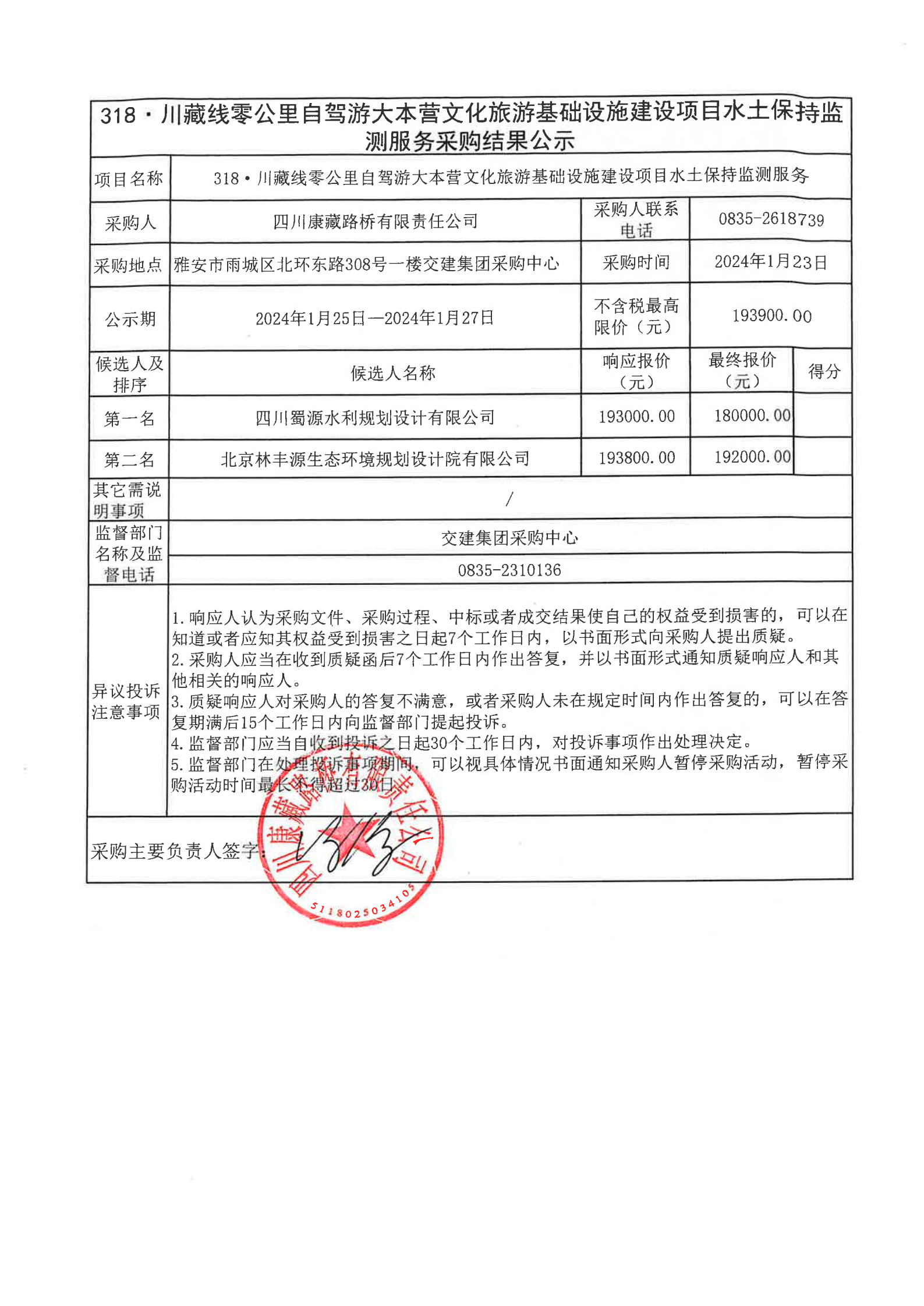 四川康藏路橋有限責(zé)任公司318·川藏線零公里自駕游大本營(yíng)文化旅游基礎(chǔ)設(shè)施建設(shè)項(xiàng)目水土保持監(jiān)測(cè)服務(wù)采購(gòu)結(jié)果公示