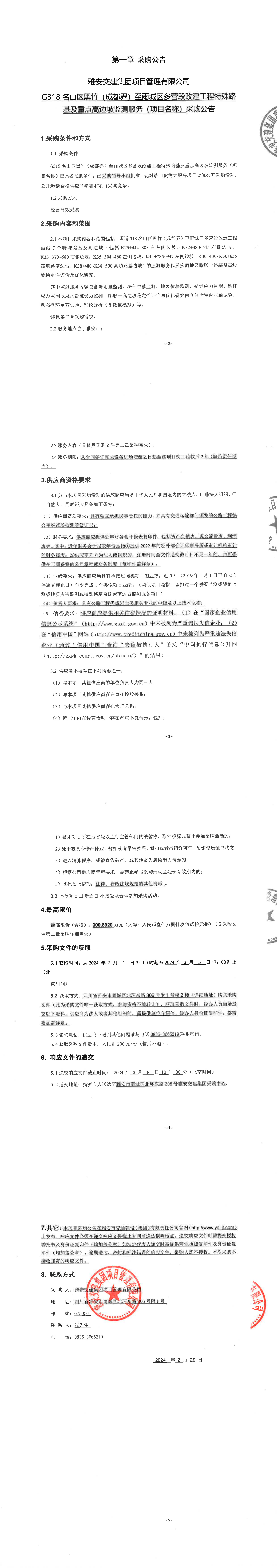雅安交建集團項目管理有限公司國道318名山區(qū)黑竹(成都界)至雨城區(qū)多營段改造工程的特殊及重點路基高邊坡監(jiān)測服務(項目名稱)采購公告