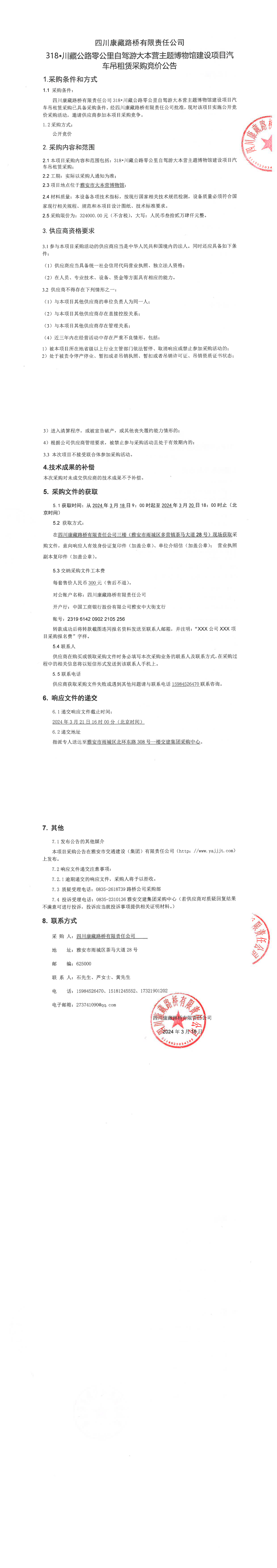 四川康藏路橋有限責(zé)任公司318•川藏公路零公里自駕游大本營主題博物館建設(shè)項(xiàng)目汽車吊租賃采購競價(jià)公告