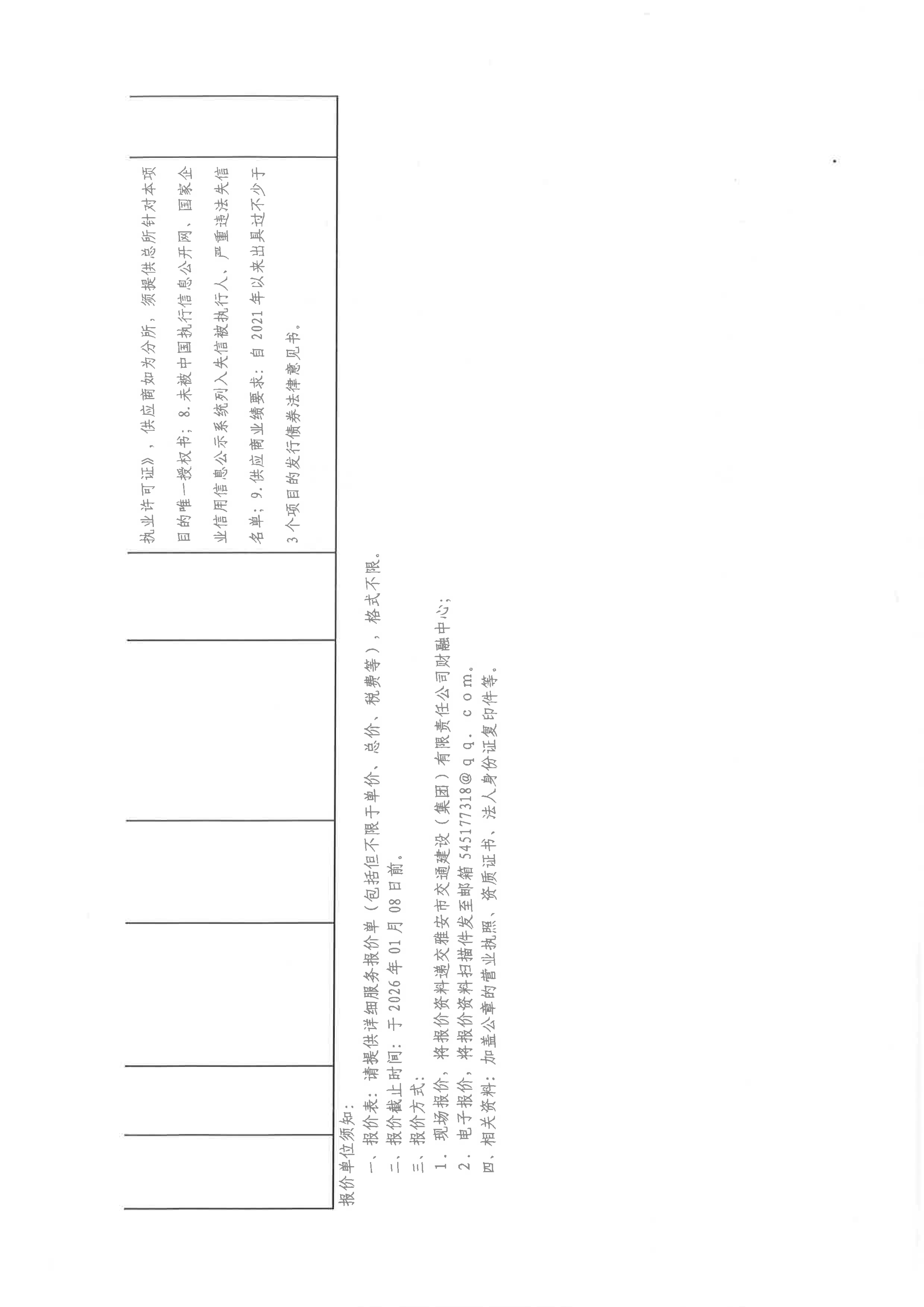 關(guān)于雅安市交通建設(shè)(集團(tuán))有限責(zé)任公司砂石資源、各類經(jīng)營權(quán)評估服務(wù)限價(jià)的詢價(jià)函
