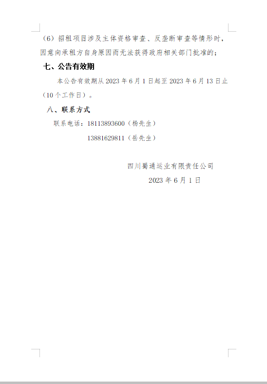蜀通公司招租公告附件