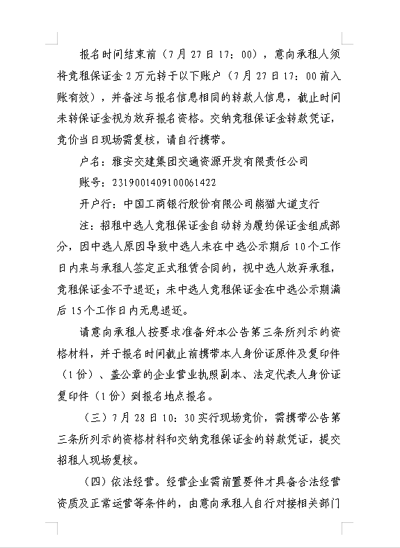 雅安交建集團交通資源開發(fā)有限責(zé)任公司雨名快速通道名山服務(wù)區(qū)場地(游樂類項目)招租公告