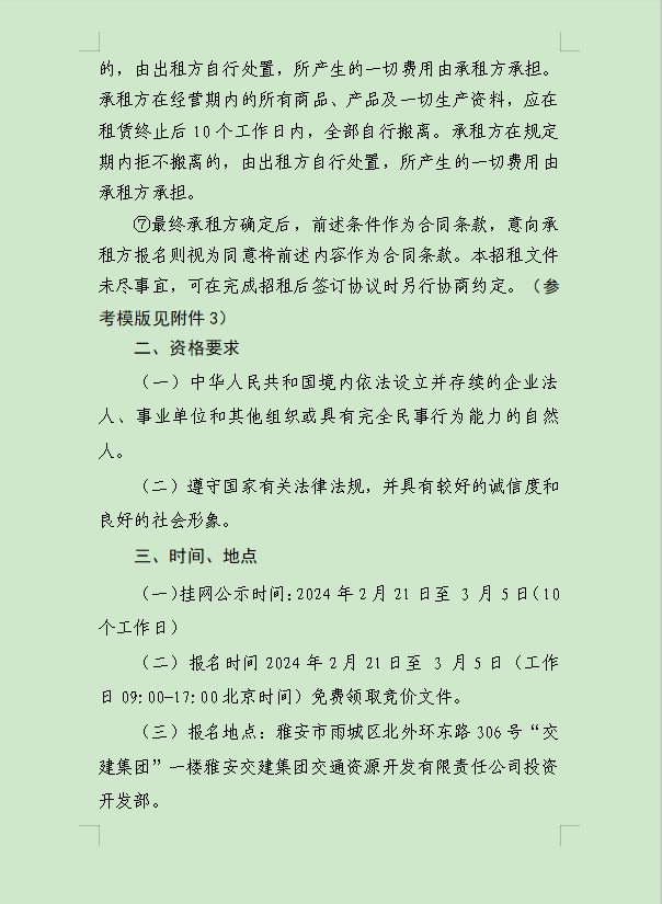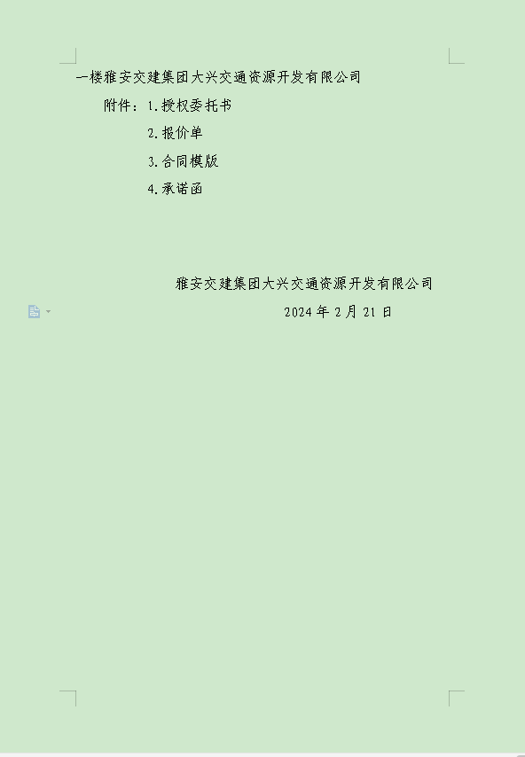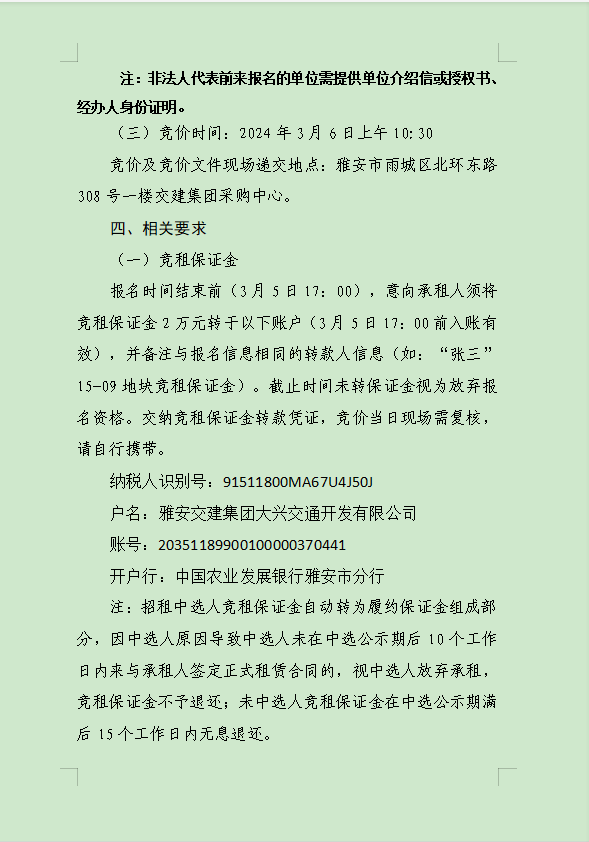 雅安交建集團(tuán)大興交通資源開發(fā)有限公司關(guān)于雨城區(qū)姚橋片區(qū)15-09地塊2024年競價(jià)招租的公告附件
