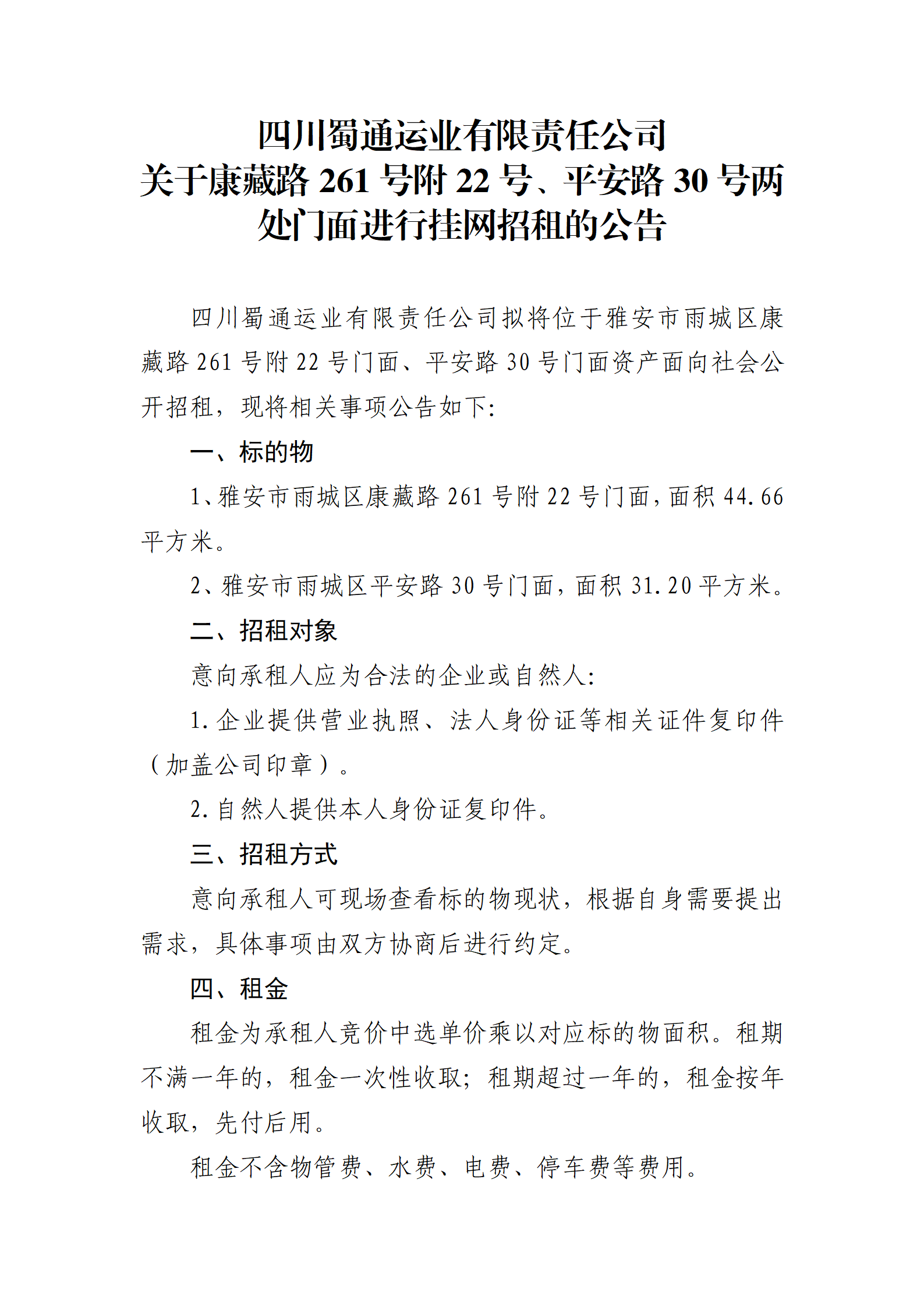 ËÄ´¨Êñͨß\˜I(y¨¨)ÓÐÏÞØŸ(z¨¦)Èι«Ë¾ êP(gu¨¡n)ÓÚ¿µ²ØÂ·261Ì–¸½22Ì–¡¢Æ½°²Â·30Ì–ƒÉÌŽéTÃæßM(j¨¬n)ÐÐ’ì¾W(w¨£ng)ÕÐ×âµÄ¹«¸æ