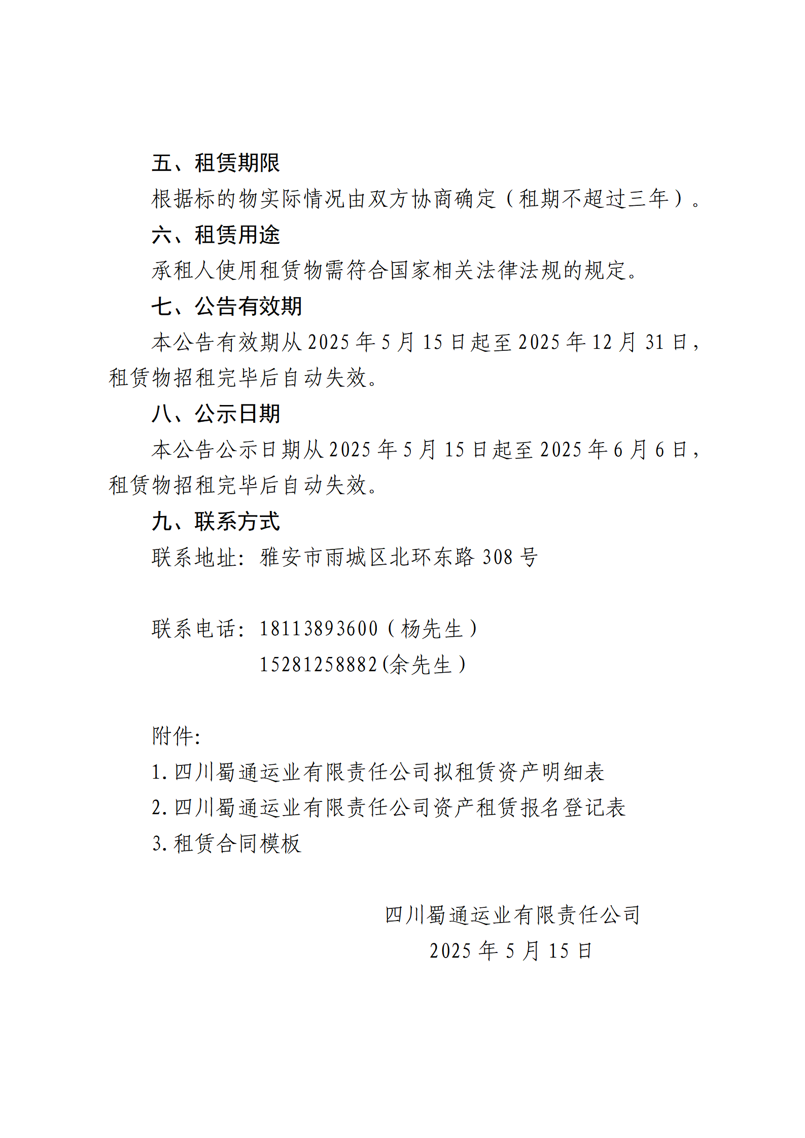 四川蜀通運業(yè)有限責任公司 關于雅安市寶興縣四處商鋪資產進行二次掛網招租的公告