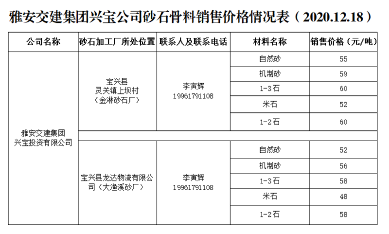 ÑŰ²½»½¨¼¯ˆF(tu¨¢n)ÔÆÊ¯¹«Ë¾É°Ê¯¹ÇÁÏäN(xi¨¡o)ÊÛƒr(ji¨¤)¸ñÇé›r±í£¨2020.12.15£©