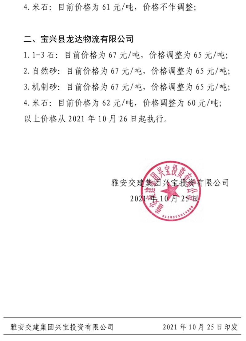 ÑŰ²½»½¨¼¯ˆFµ¤Ê¯¹«Ë¾êPÓÚÕ{Õû³ÉÆ·¹ÇÁϼ°ïL»¯µVʯÁÏäNÊÛƒr¸ñµÄ֪ͨ£¨2021.10.26£©