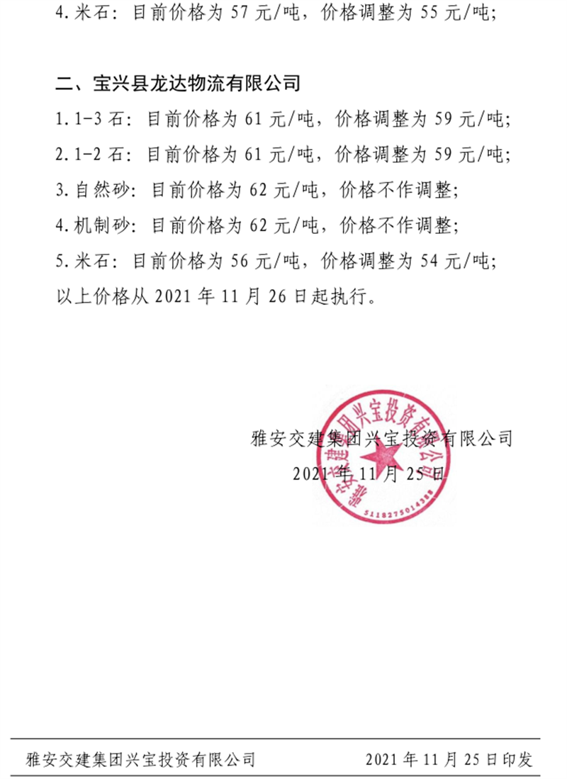 ÑŰ²½»½¨¼¯ˆF(tu¨¢n)µ¤Ê¯¹«Ë¾êP(gu¨¡n)ÓÚÕ{(di¨¤o)Õûɰʯ³ÉÆ·¹ÇÁÏäNÊÛƒr¸ñµÄ֪ͨ£¨2021.12.9£©