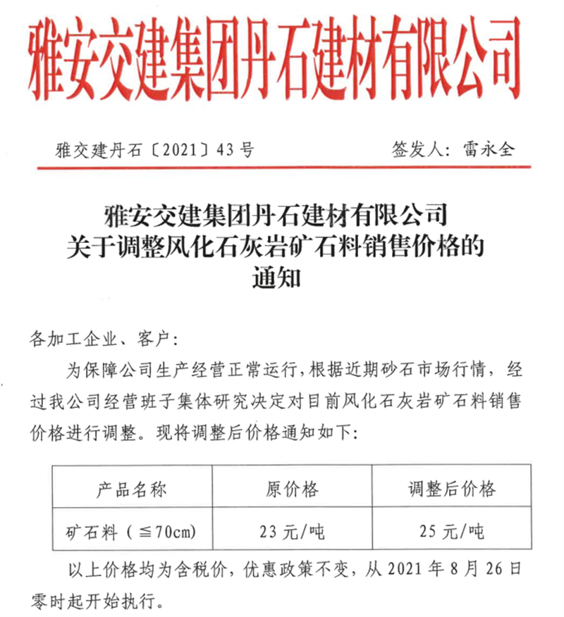 ÑŰ²½»½¨¼¯ˆFµ¤Ê¯¹«Ë¾êP(gu¨¡n)ÓÚÕ{(di¨¤o)ÕûïL(f¨¥ng)»¯Ê¯»Ò?gu¨©)rµVʯÁÏäNÊÛƒr¸ñµÄ֪ͨ